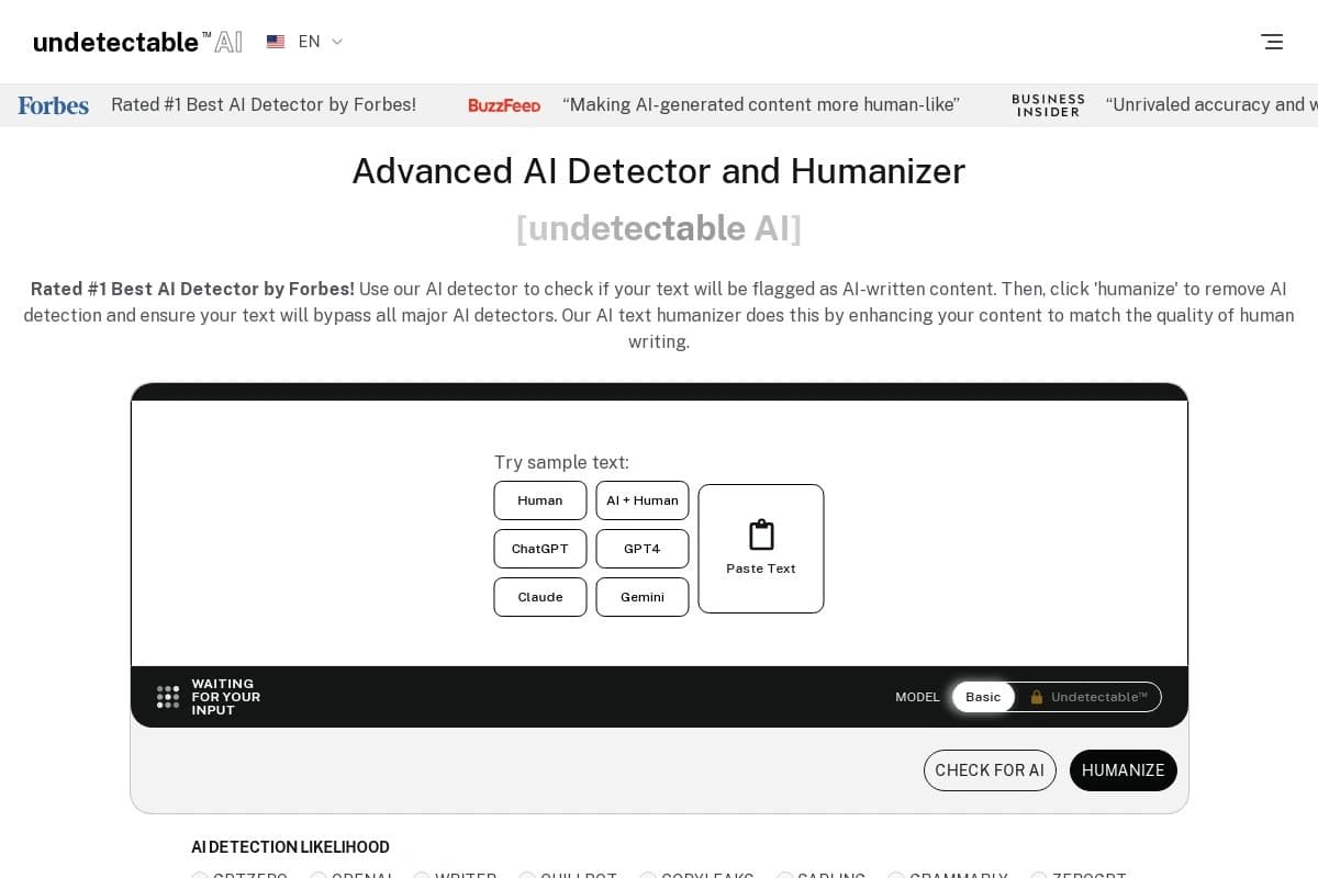 Undetectable.ai transforms AI-generated text into human-like content that bypasses AI detection tools, ensuring credibility and authenticity for bloggers, students, marketers, and businesses.